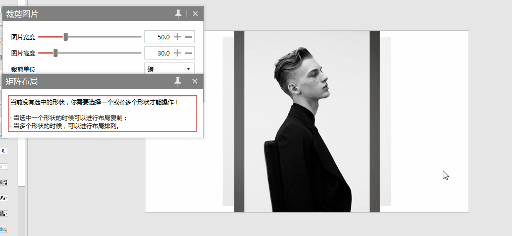 散乱的目标经过 iSlide 的矩阵布局功能可以瞬间排列整齐,还可通过数值调控成你想要的数量、间距甚至角度。