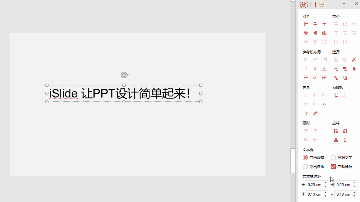 除此之外,iSlide 将可能会用到的小工具分类集合在一起,统计放在 PPT 的左边设计工具栏,使用相当便捷。