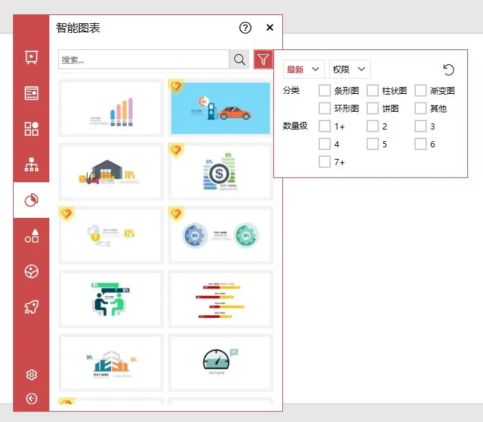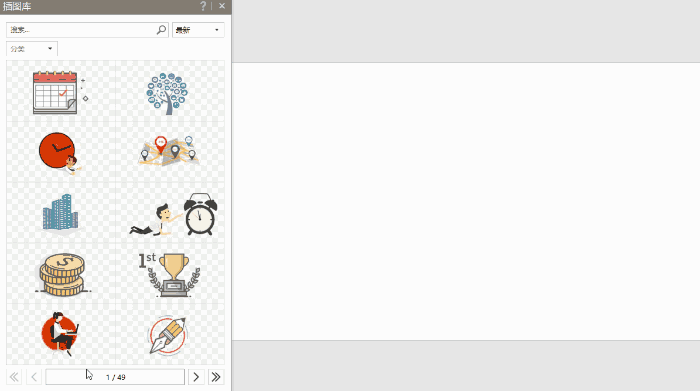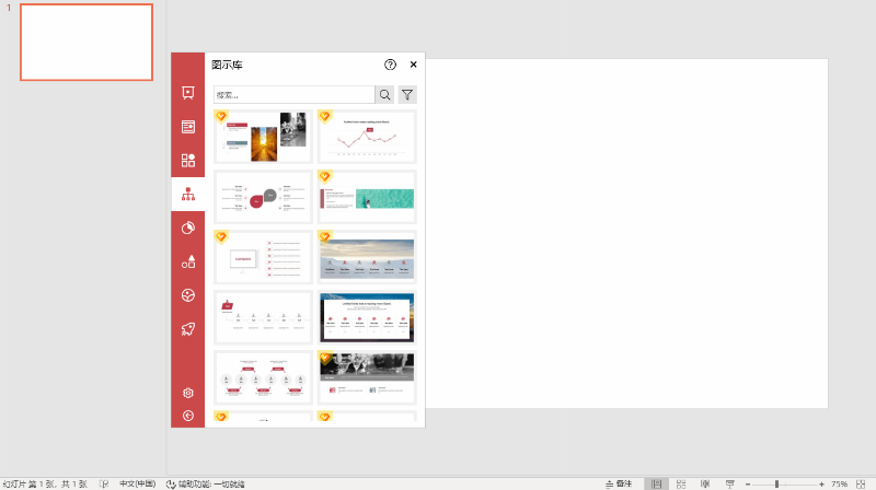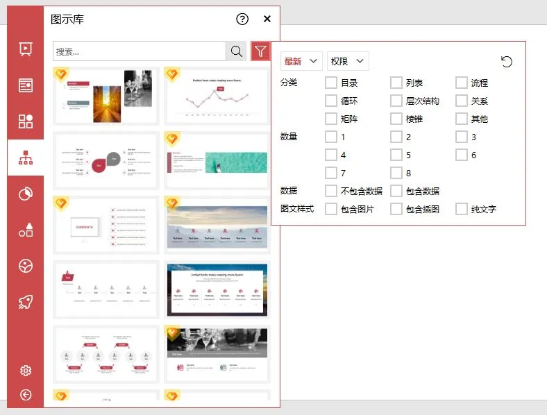 图示库提供了一种叫分页模板的功能,这与 PPT 中的 SmartArt 功能类似。但是它可以提供几千种选择,而且每天都有更新。