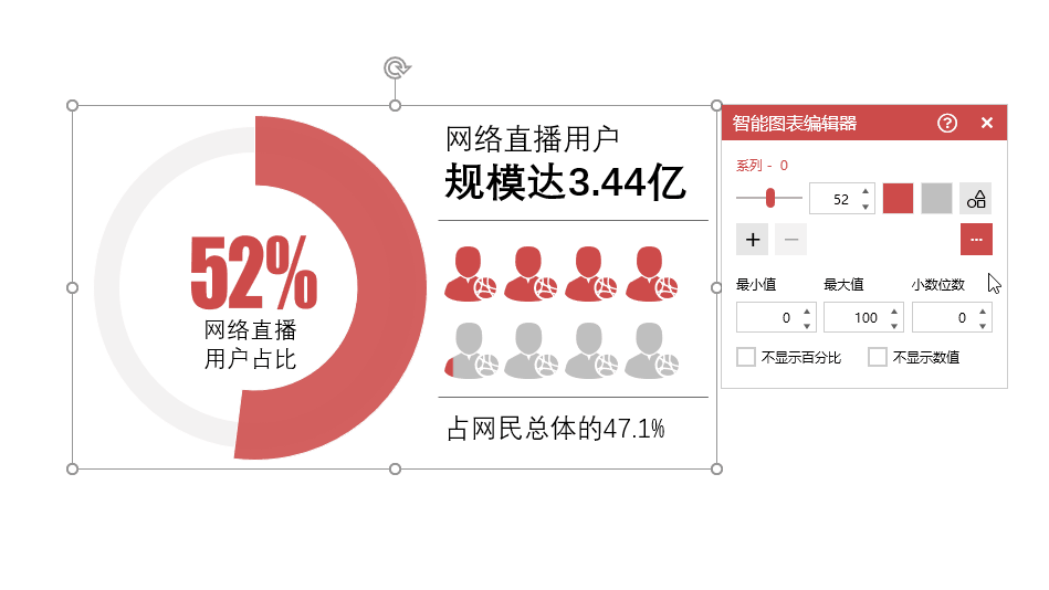 同时还可以控制小数及否显示数值、百分比。