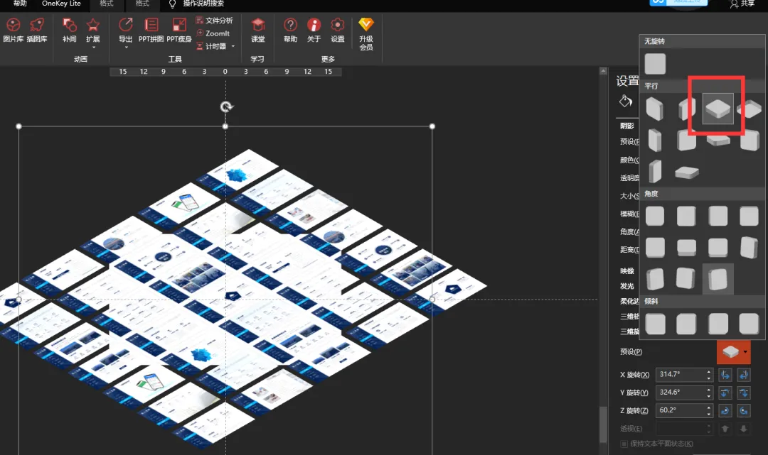 当然还有其他的摆放方式,可以利用【三维旋转】对样机的角度进行调整。
