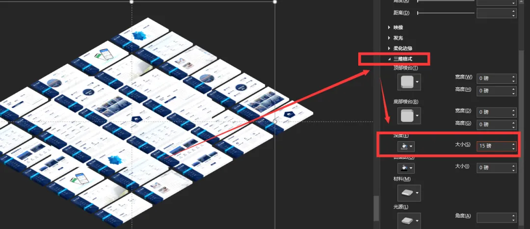 最后再设置一下【三维格式】的【深度】就可以了——大小:15
