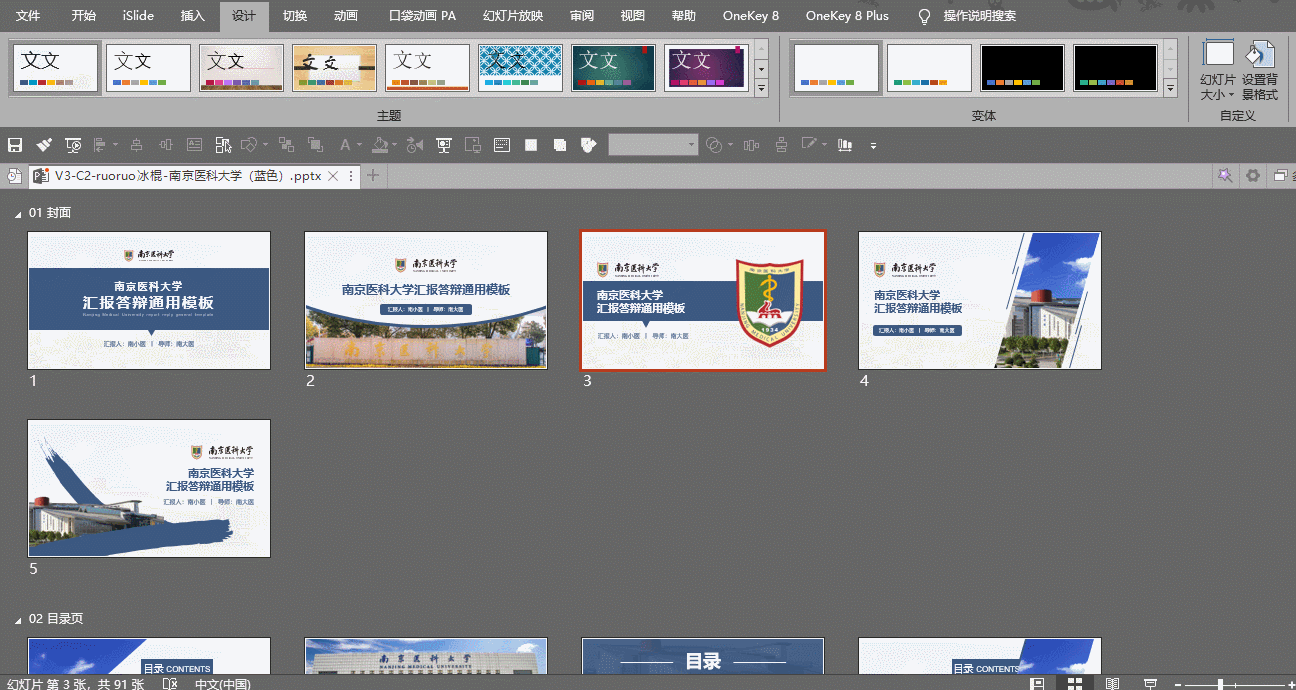 在秋叶PPT #我给母校送模板# 活动的强大技术支持下,新媒体技术组历时两个月,为大家定制了南医大第一套专属答辩汇报PPT模板,加上模板使用手册,总共91页(文末有获取方式)。