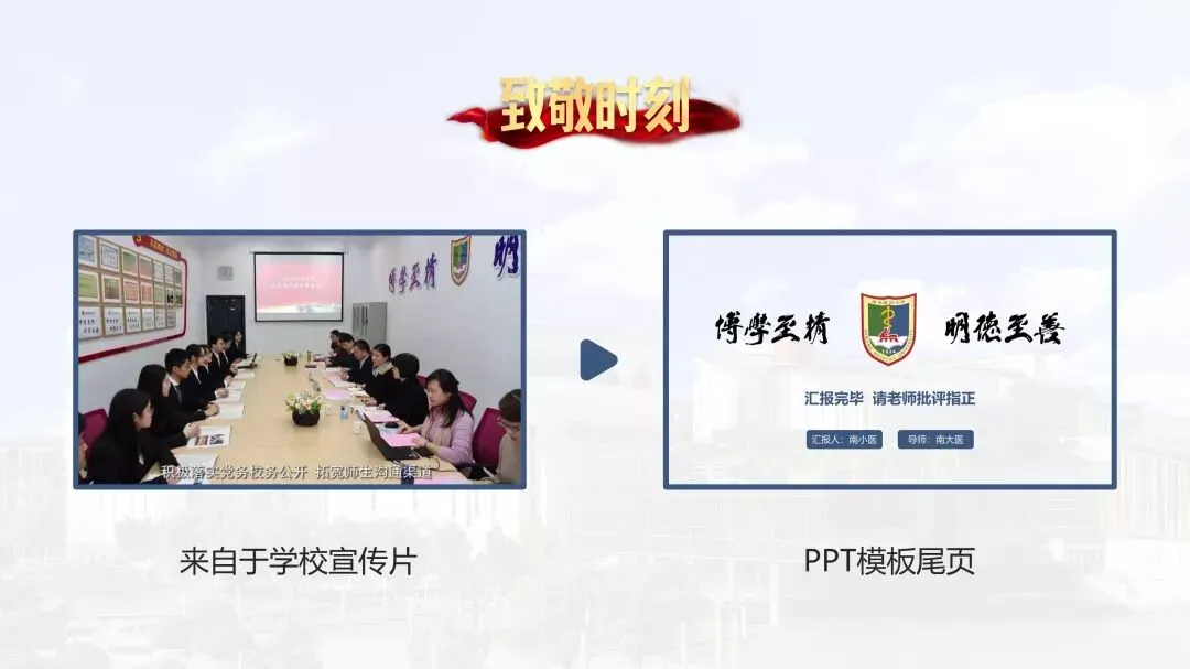 作为南医大专属PPT模板,必须要有辨识度高、有南医特色的设计元素,主要分为两个方面。