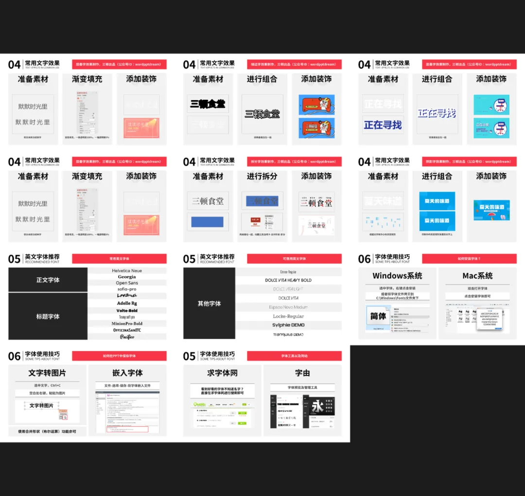 除此之外,还给大家对可商用字体和三顿制作的一些PPT设计案例做了打包,全部附赠给大家。