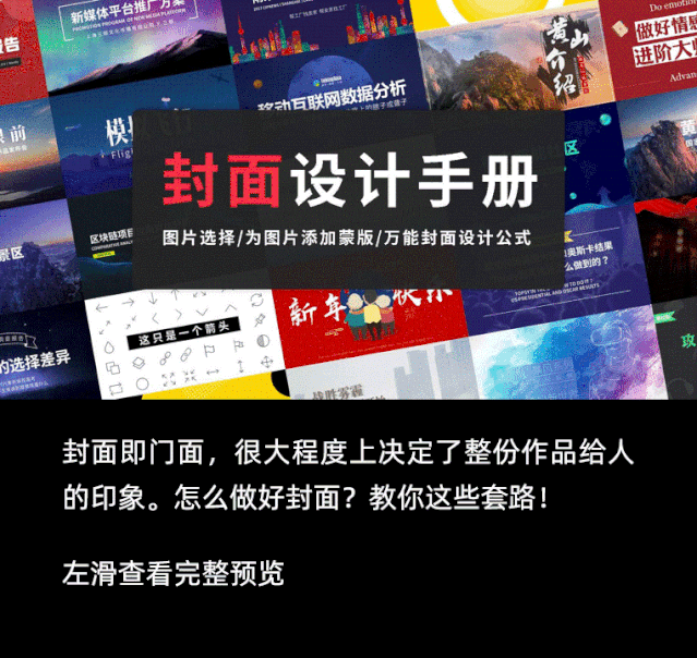 同样的,手册中分享了很多有关封面的制作技巧,可有时候还是想偷个懒,套用一些现成的,没关系,三顿备足了存货: