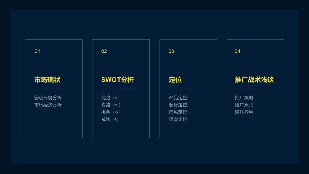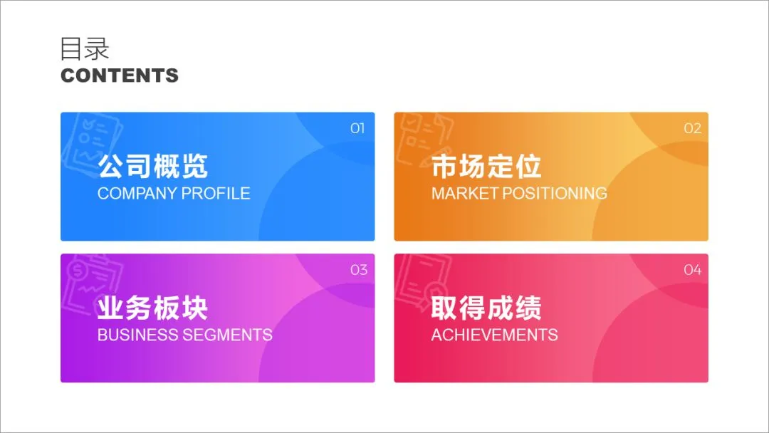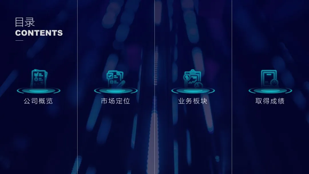 其实,对于这样的目录页设计来说,它只是单纯地在向观众展示,你要表达哪几个方面的内容而已。