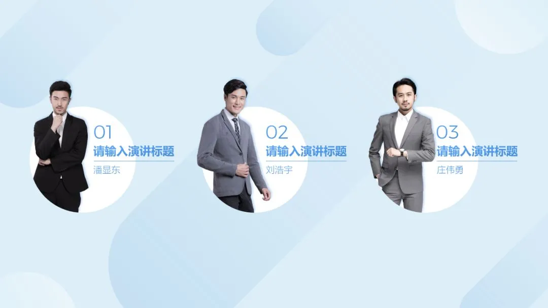 如果一场演讲,有多个主讲人,那么,可以在目录页上,将主讲人信息体现出来。