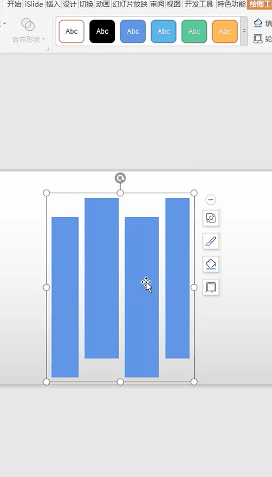 ❶插入几个矩形,摆成图中的效果,点击鼠标左键选中所有矩形,同时按下【Ctrl+G】对矩形进行组合。