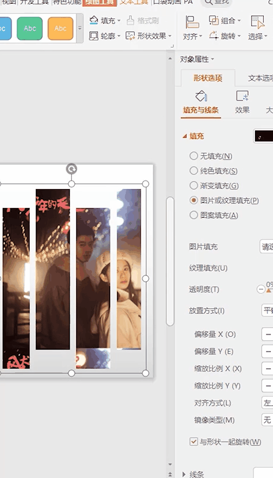 ❷选中组合后的矩形,鼠标点击右键,点击【填充】,选择【图片或纹理填充】,选择一张合适的图片