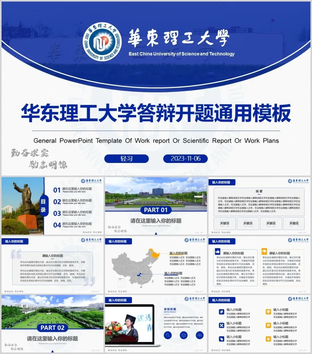 华东理工大学专属PPT模板来了,喜欢的同学不要错过啦!