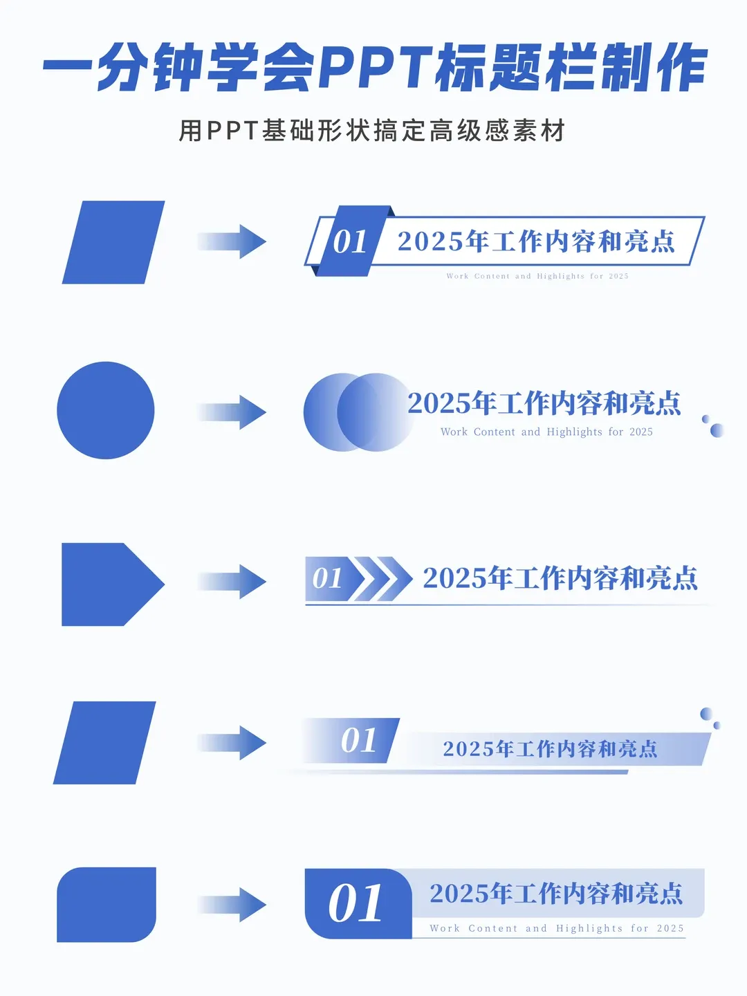很多人做PPT,都只会把标题文字加粗放大,要么就是用个艺术字甩上去,显得既单调又廉价……只要你用好PPT里自带的基础形状,比如矩形、圆形、线条……,稍微花点心思组合一下,就能做出设计感爆棚的标题框,简单又高级!今天我们就来拆解5种简单、出效果的PPT标题框制作方法。