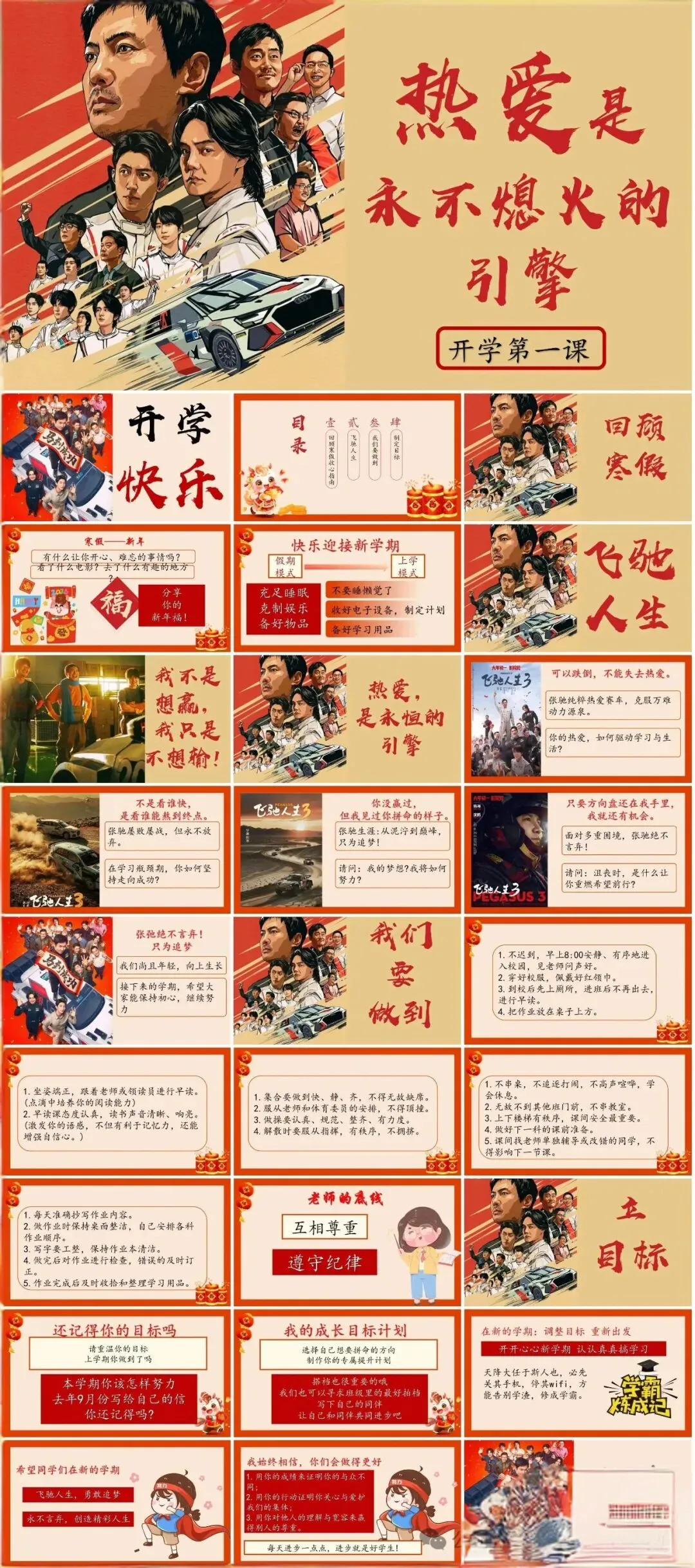 各位同学,大家新年好!欢迎回到我们的班级,正式开启新学期的校园生活,今天这节开学第一课,我们的主题是热爱是永不熄火的引擎。