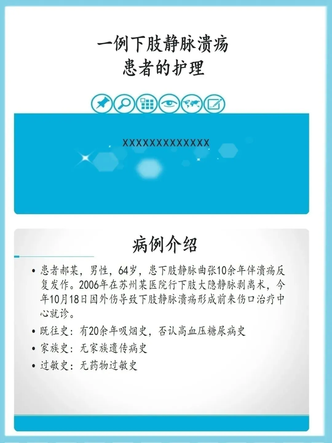 一例下肢静脉溃疡患者的护理ppt模板(可编辑)