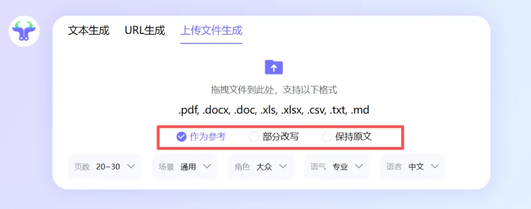 如果你已经有现成的文档,一定要用"参考文件生成"功能,这样AI会保持你的原意,只做排版优化。