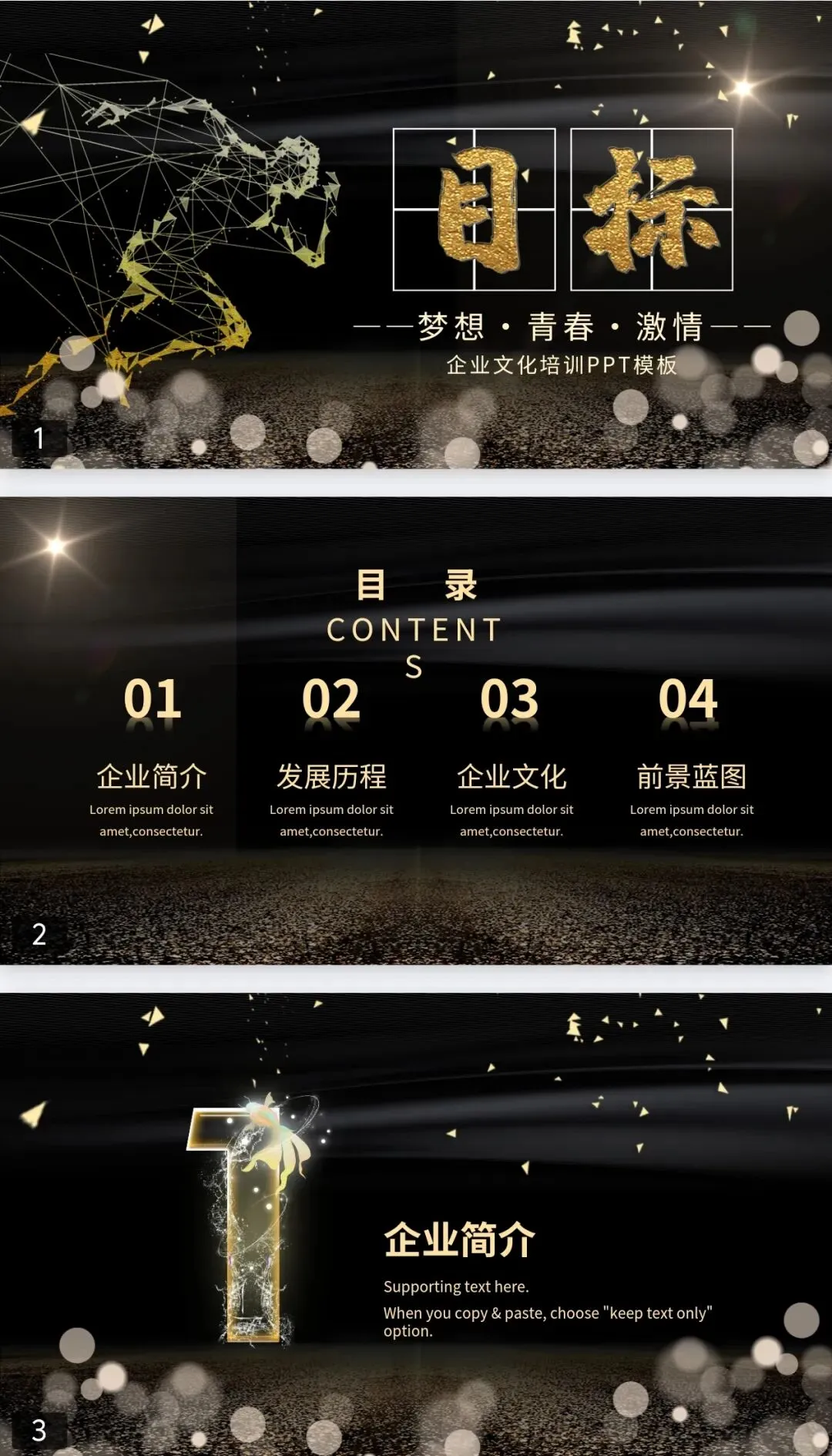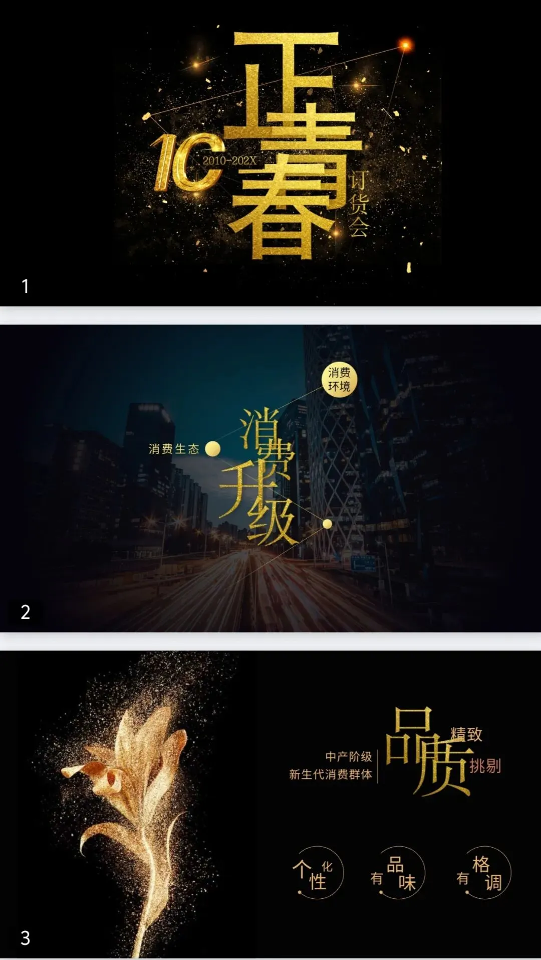 本文分享内容是:今天给大家带来的是40套 高级感大气黑金风格PPT模版