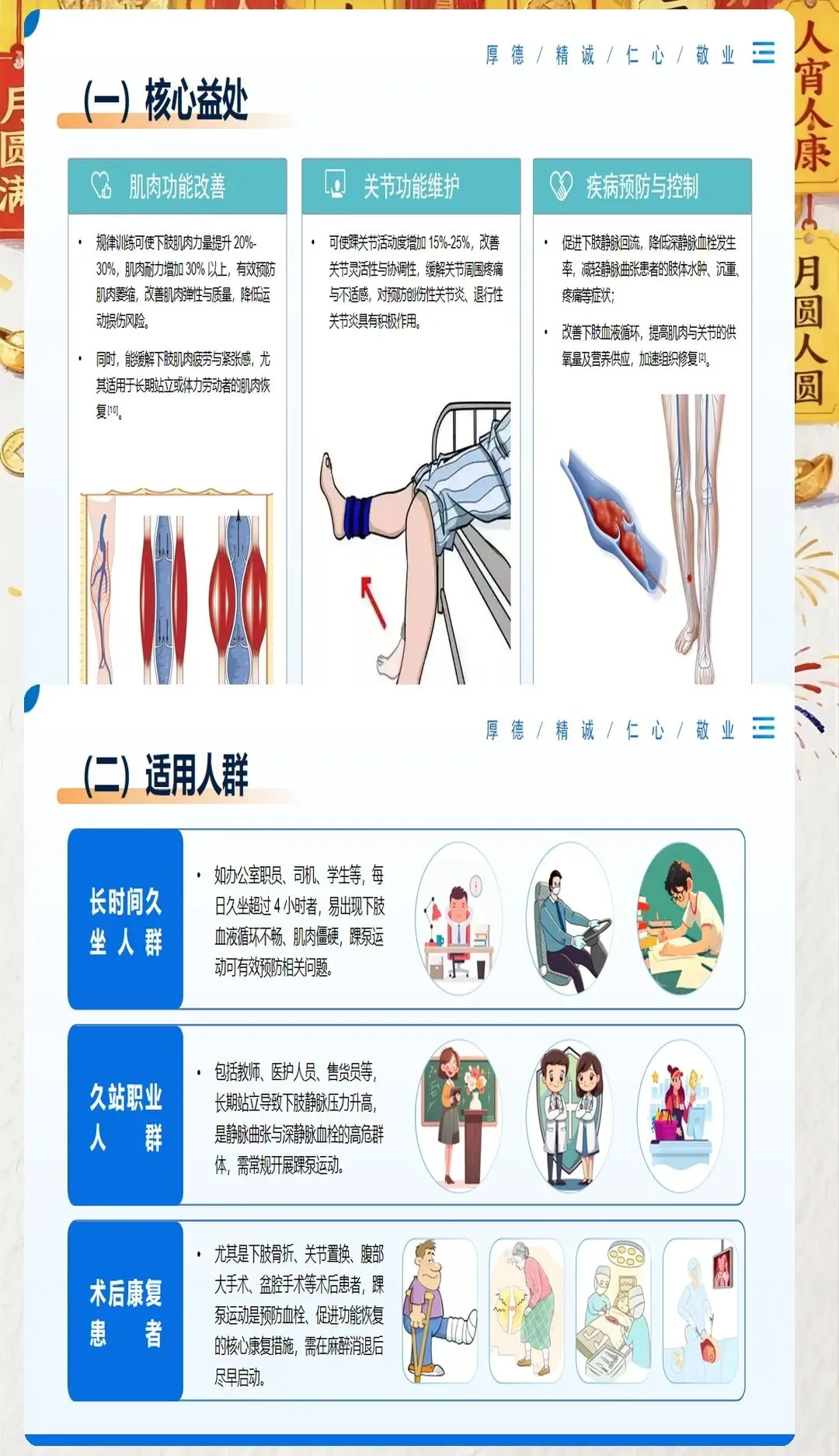 术后患者:尤其是下肢手术、腹部手术等术后需要长期卧床的患者,进行踝泵运动可以有效预防深静脉血栓的发生。