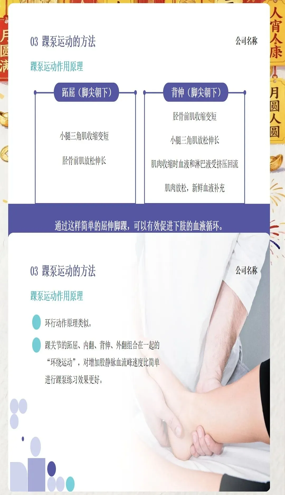 促进血液循环:当我们进行踝泵运动时,小腿肌肉的收缩和舒张会像“肌肉泵”一样,将下肢静脉内的血液挤压回心脏,增加下肢静脉的回流速度,减少血液在静脉内的停留时间,从而降低血液凝固的风险。