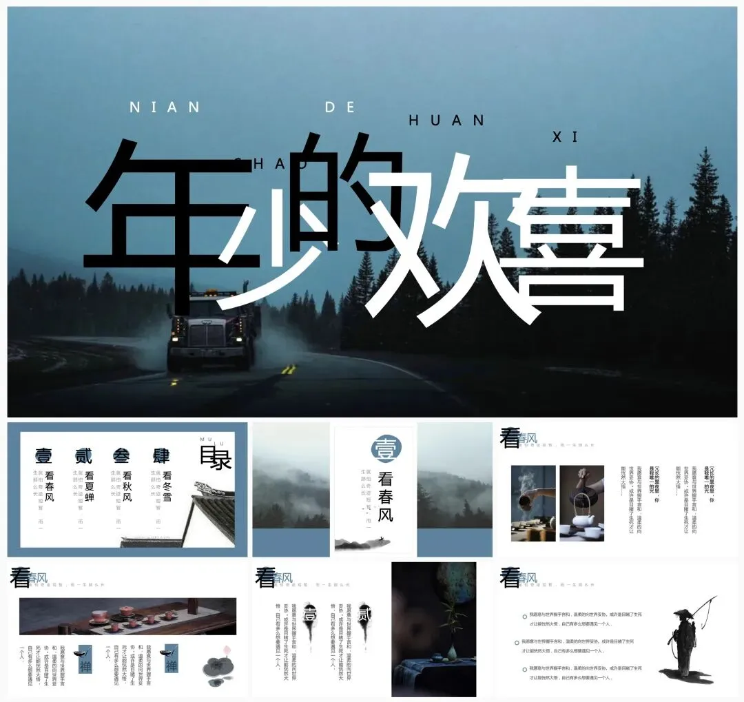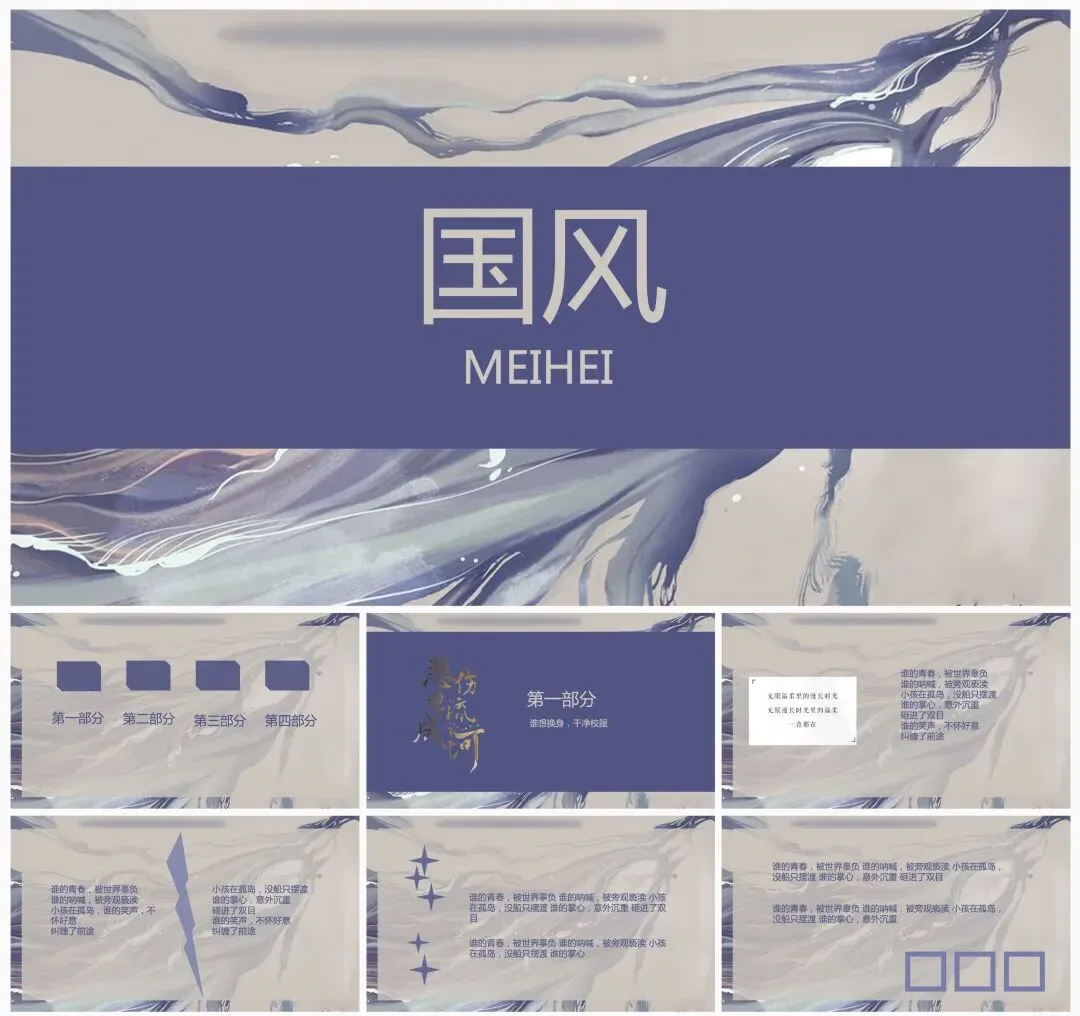 本文内容分享【国风靛蓝PPT模板】