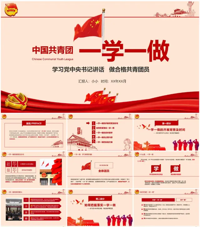 适用于主题团日、主题团课、工作汇报、一学一做、青年大学习汇报、五四表彰大会、团代会提案展示等等……