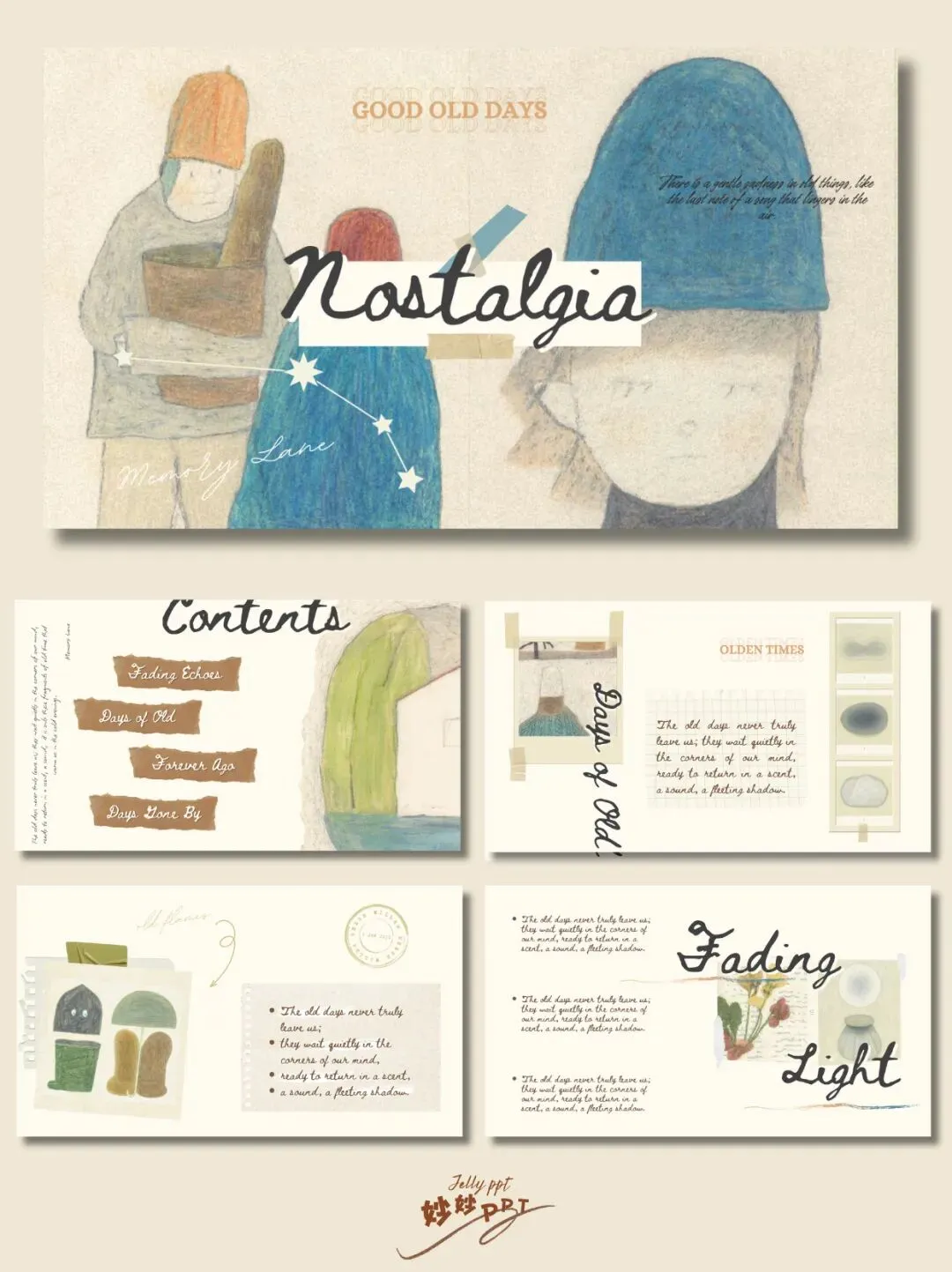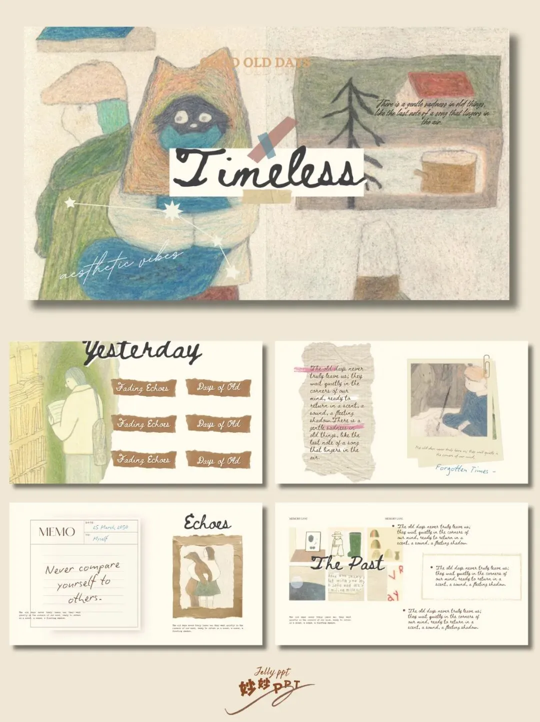 >⌯'ᵕ'⌯|旧时光 复古拼贴艺术ppt模板|插画风PPT|ppt课件|ppt素材