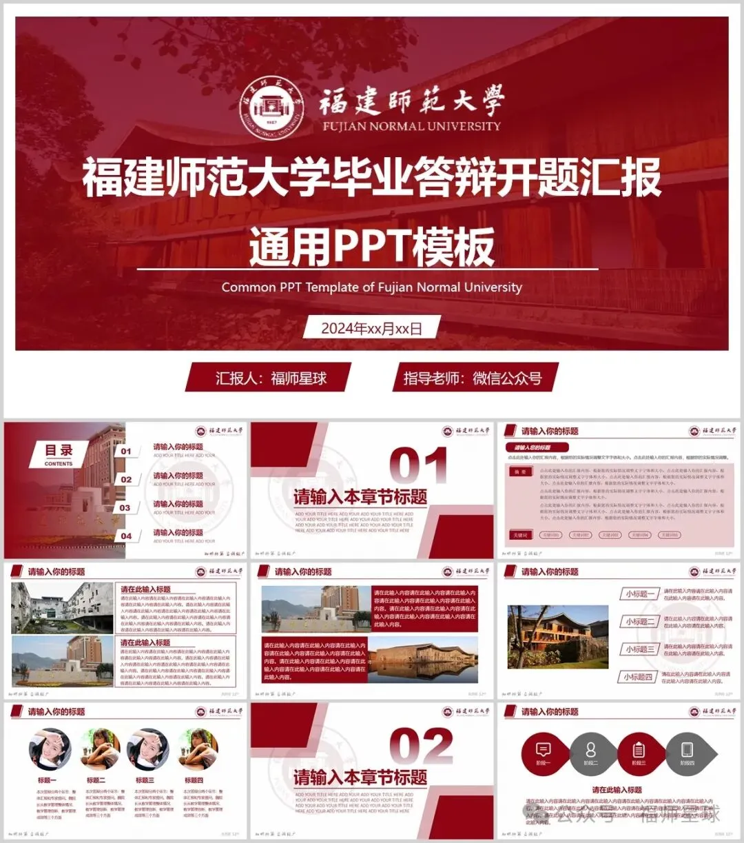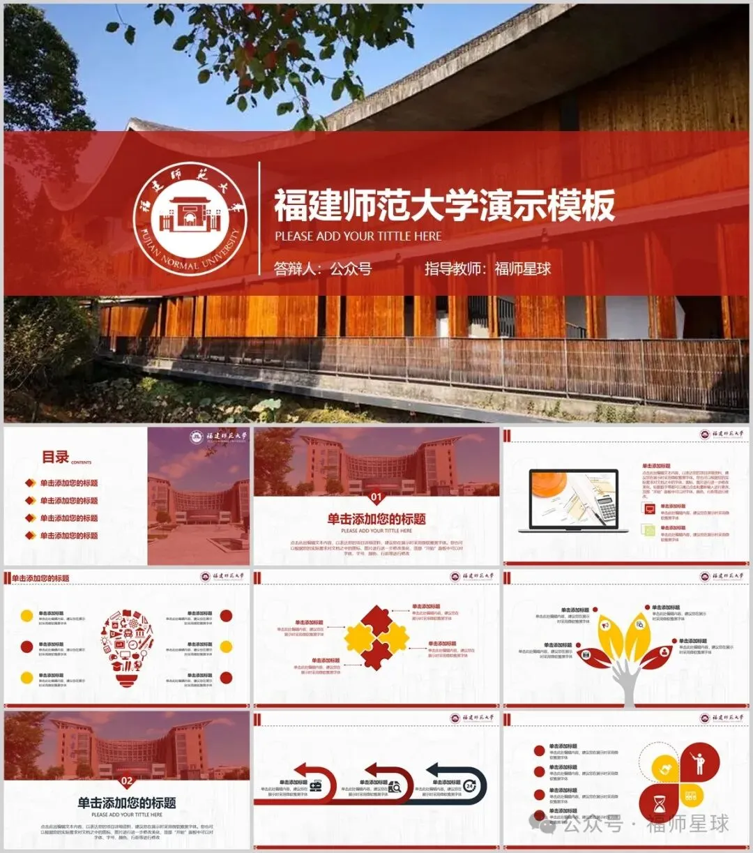 “福建师范大学”PPT模板来了~