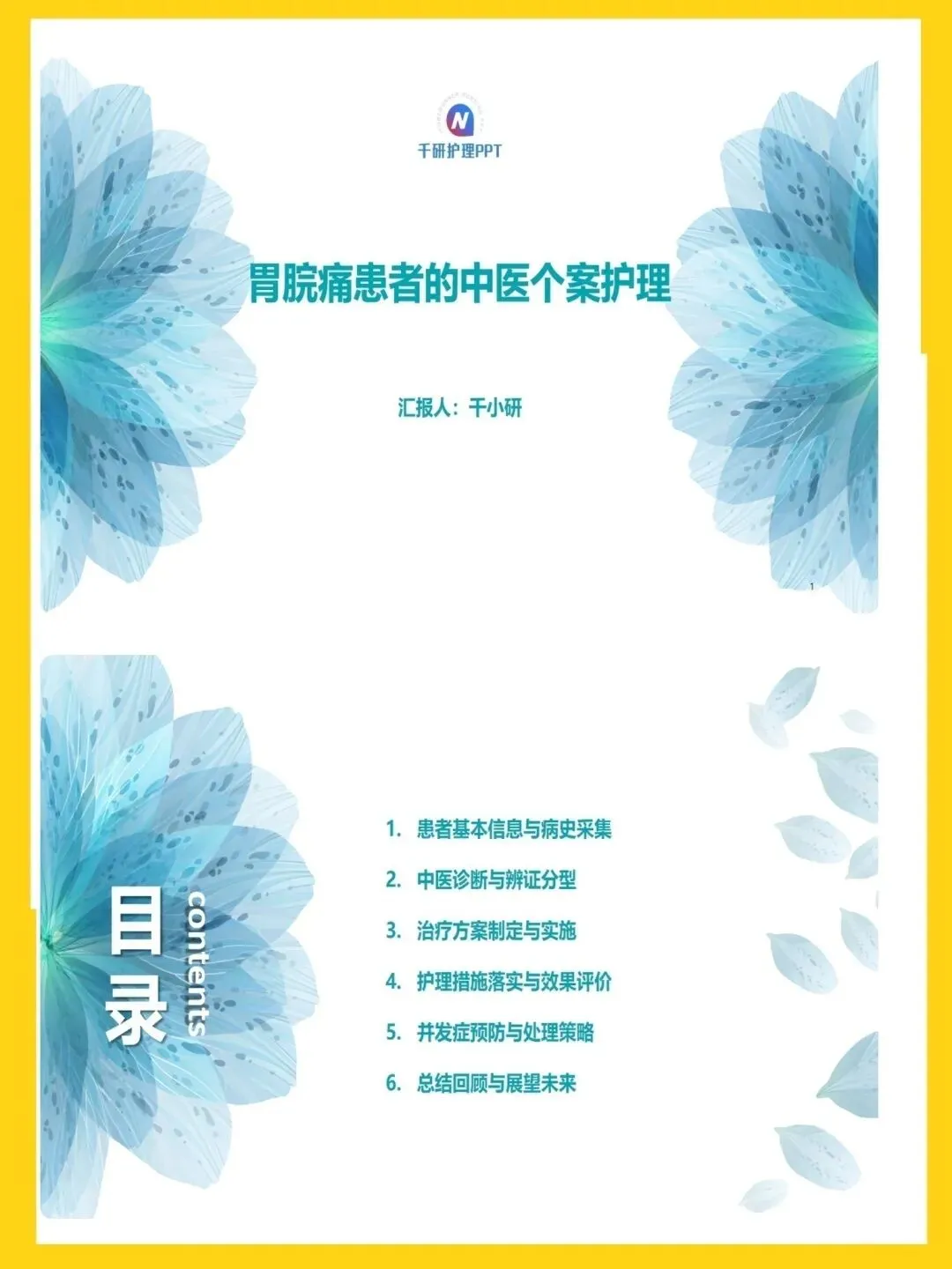 >胃脘痛患者的中医个案护理ppt模板分享