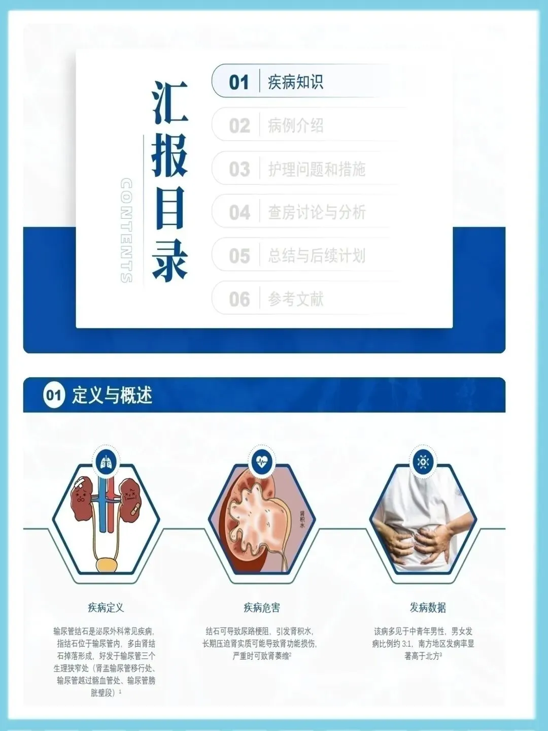 一例输尿管结石患者的护理查房ppt模板分享