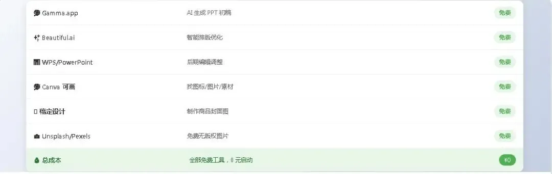 | Gamma.app | AI 生成 PPT | 免费 |