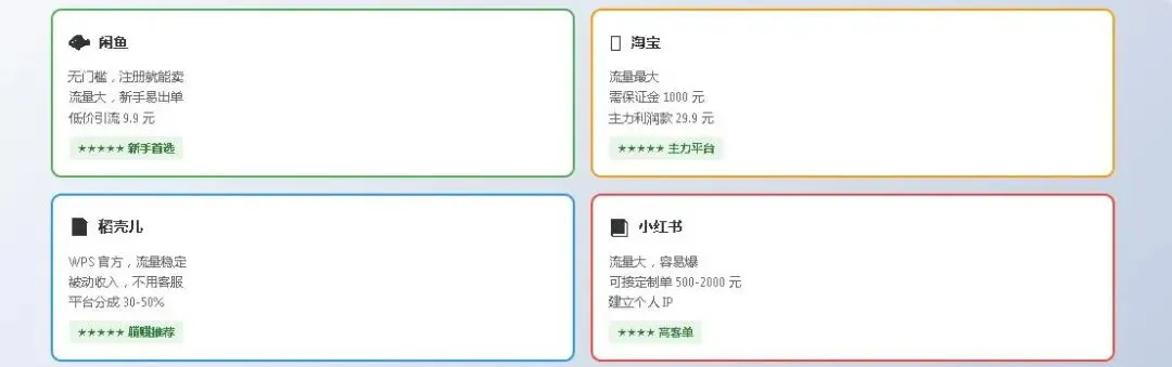 | 闲鱼 | 无门槛,起步快 | ⭐⭐⭐⭐⭐ |