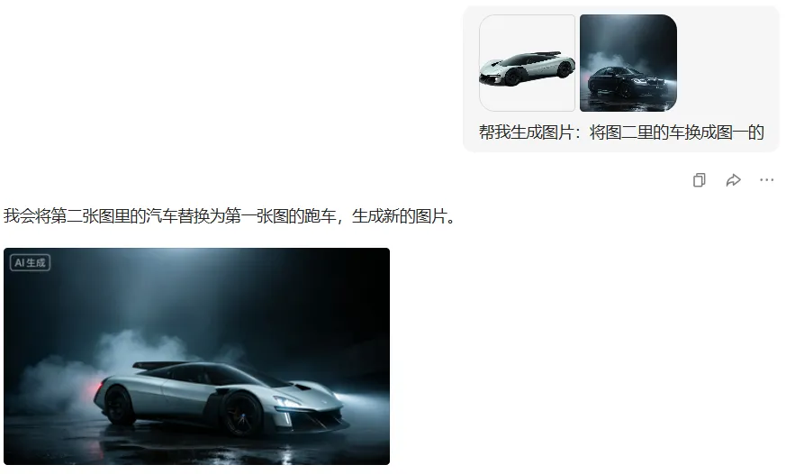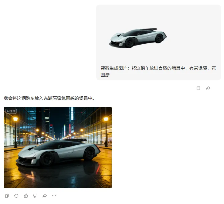 我们得先用 AI 将跑车处理一下,给他换个高级感满满的场景。