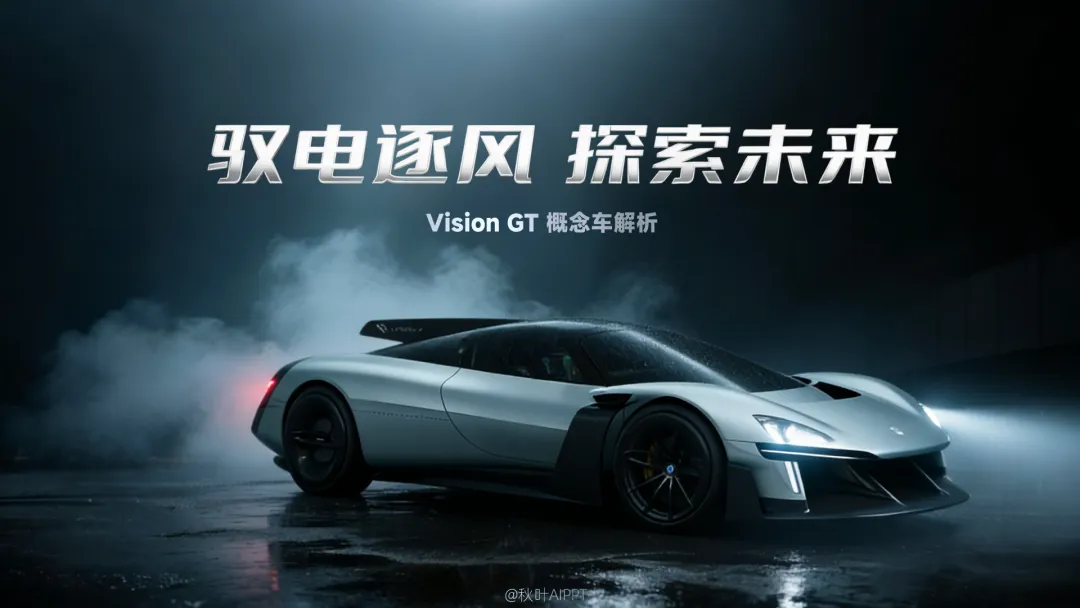 超跑本身颜值就够高,封面页不用搞复杂设计,主打一个简约高级,我们直接做全图型 PPT,用超跑本身撑起页面质感。