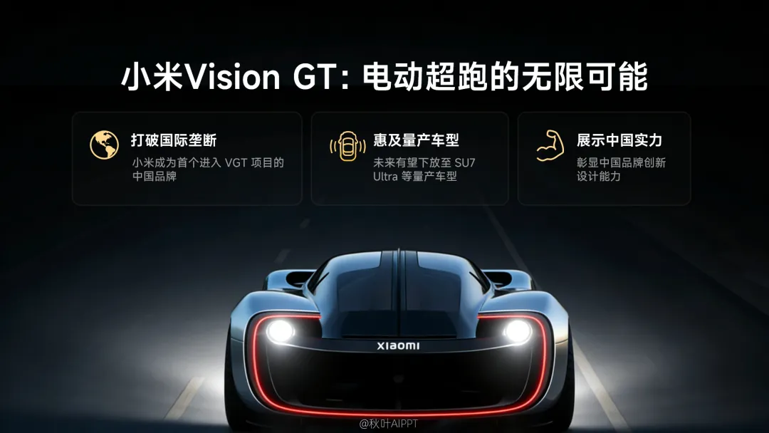 我们会有更多干货技巧和实战案例,手把手带你从 PPT 小白进阶成设计高手,让你的 PPT 也能像小米超跑一样,又快又帅!