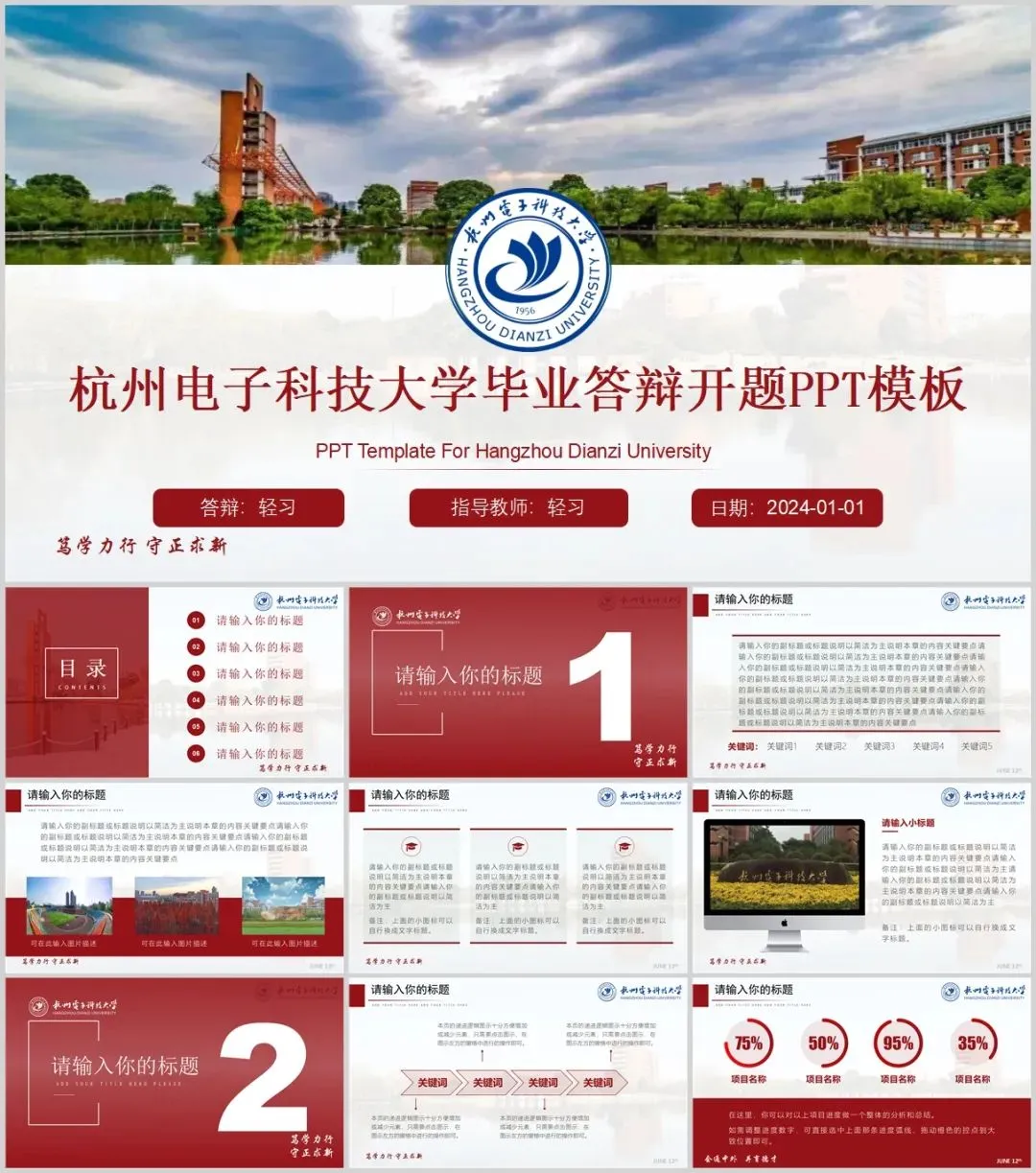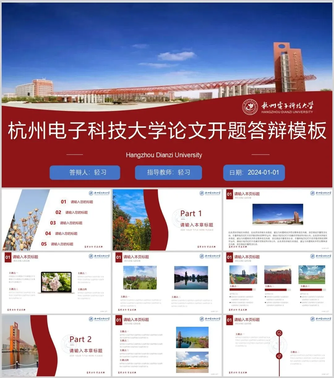 杭州电子科技大学专属PPT模板来了,喜欢的同学不要错过啦!