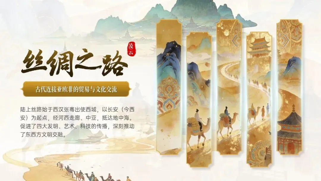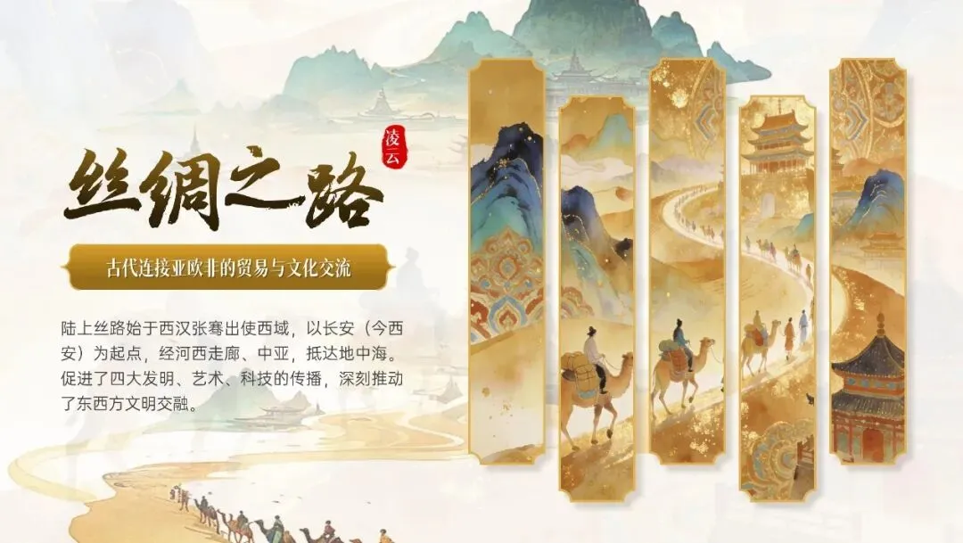 咱们在找一些丝绸之路的素材,填补画面空白的地方,增加层次感。
