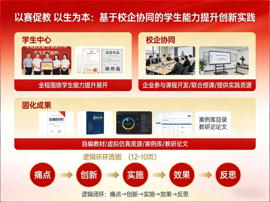 突出学生中心:全程围绕学生能力提升展开,多展示学生成果案例,体现“以赛促教、以生为本”的理念;