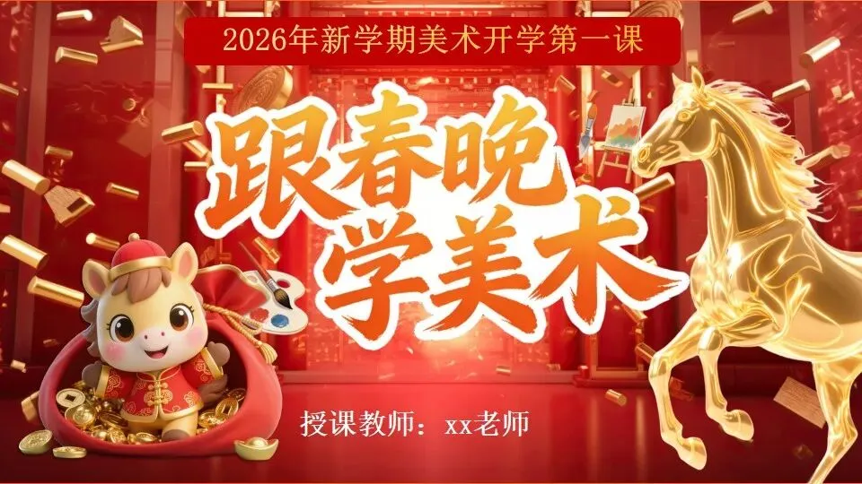 >2026马年美术开学第一课PPT模板