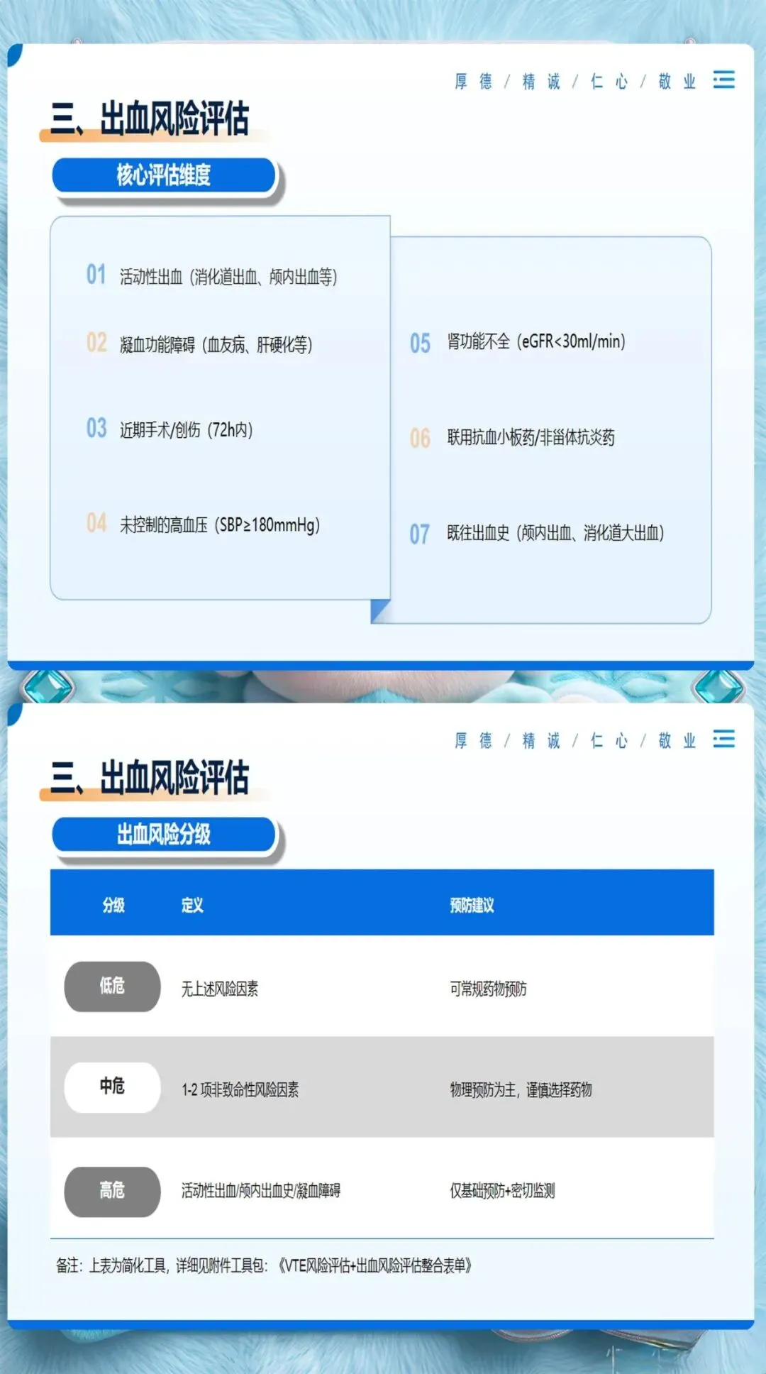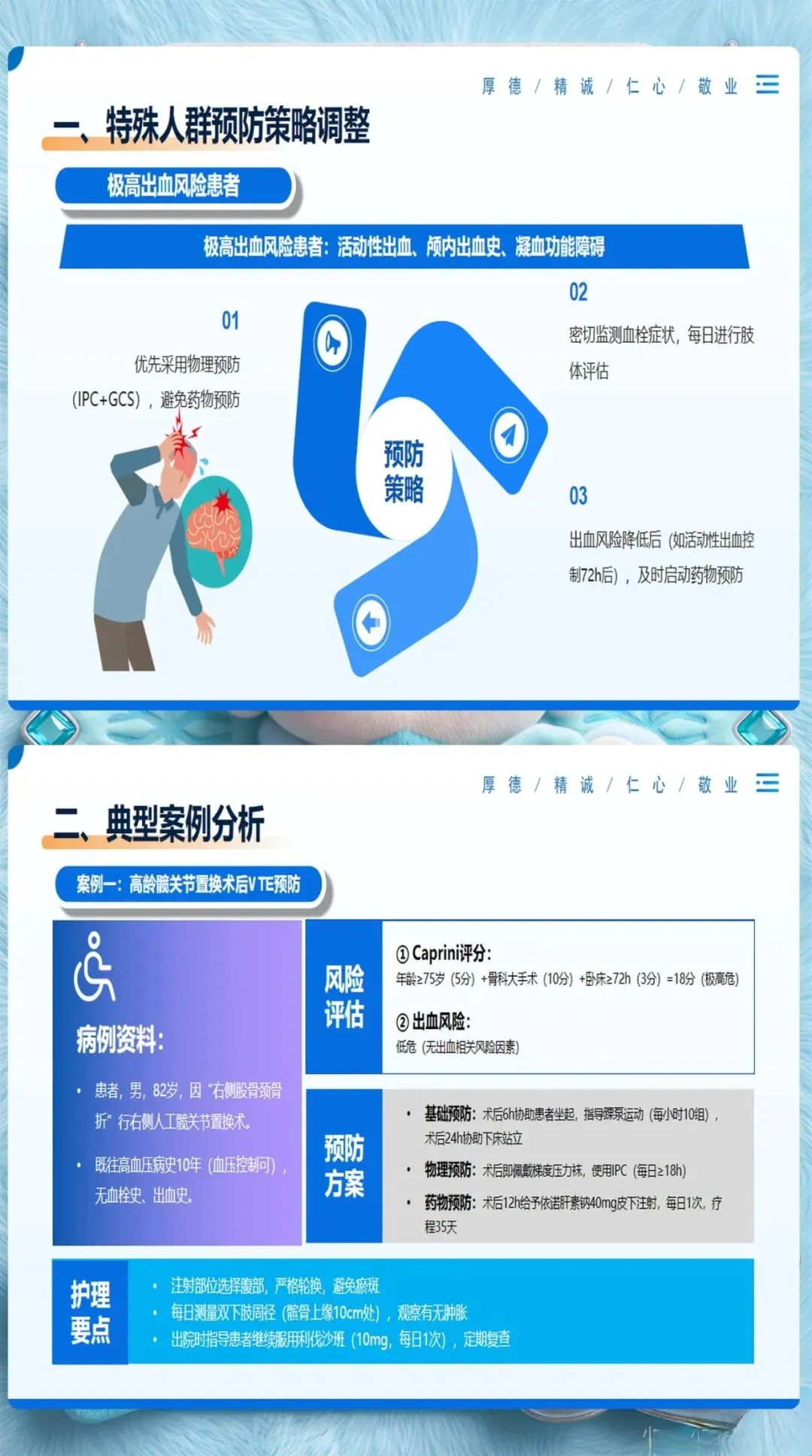 基于风险评估结果,我们需要采取分级预防措施,包括基础预防、机械预防和药物预防,需要严格遵循适应症与禁忌症,避免过度预防或预防不足。