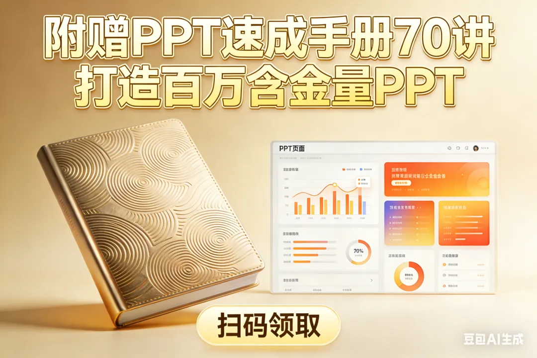 宠粉不手软!除了数万套免费PPT模板,本次额外附赠《PPT速成手册70讲》,帮你从PPT新手快速进阶,轻松创造出含金量达100万的专业PPT!
