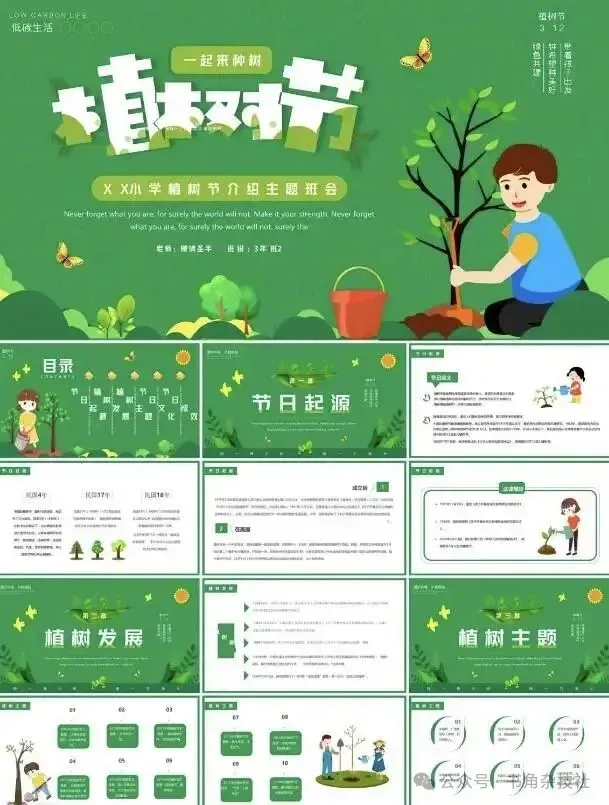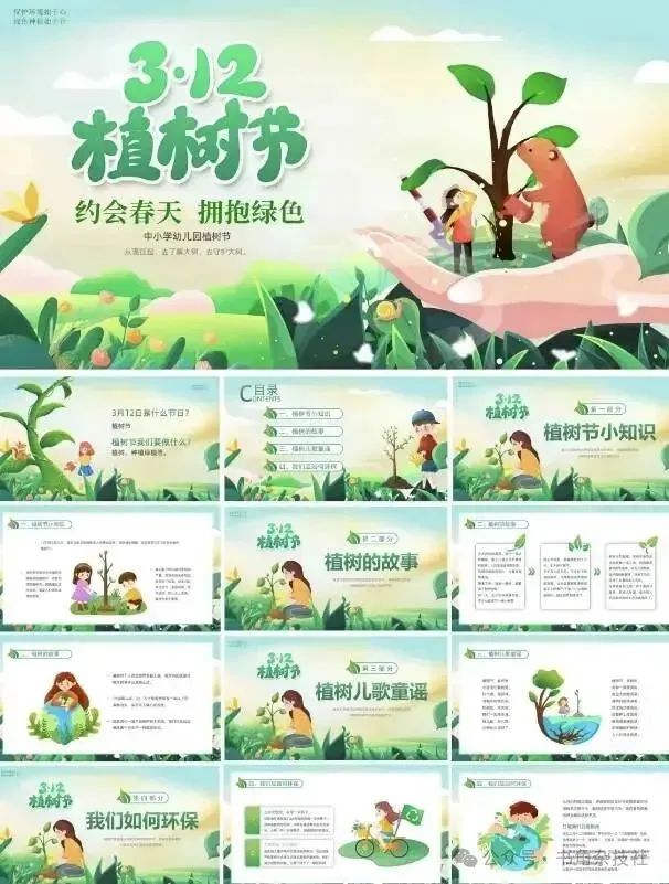 春风送暖,万物萌新,又到植树添绿的好时节。今天为大家分享33套植树节主题PPT模板,覆盖环保理念、节日活动、校园教育、绿色倡议等多种场景,采用清新自然的设计风格,为您传递绿色希望、践行生态文明的每一次展示,提供实用又美观的视觉支撑。