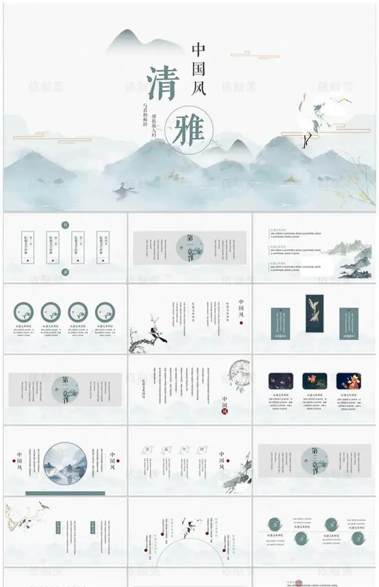 本期分享:全网最全最齐古典中国风PPT模板大全(1200款)国学大讲堂专用:水墨意境,大气沉稳
