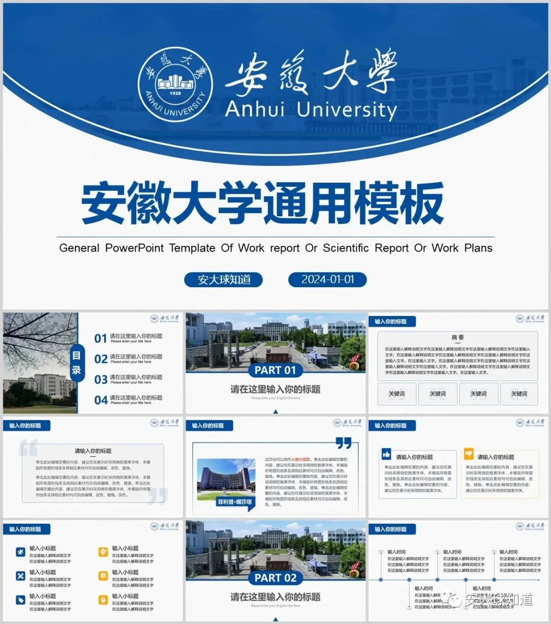 “安徽大学”PPT模板来了~