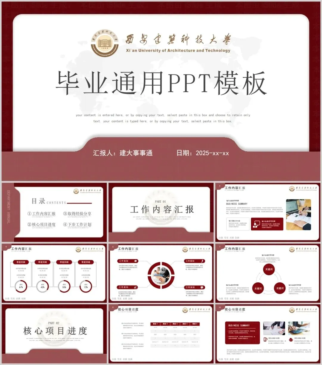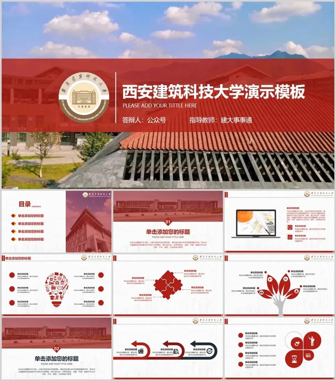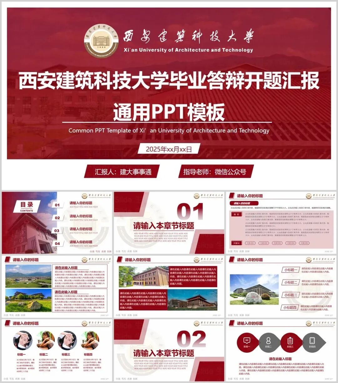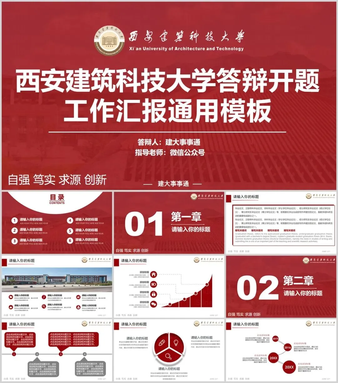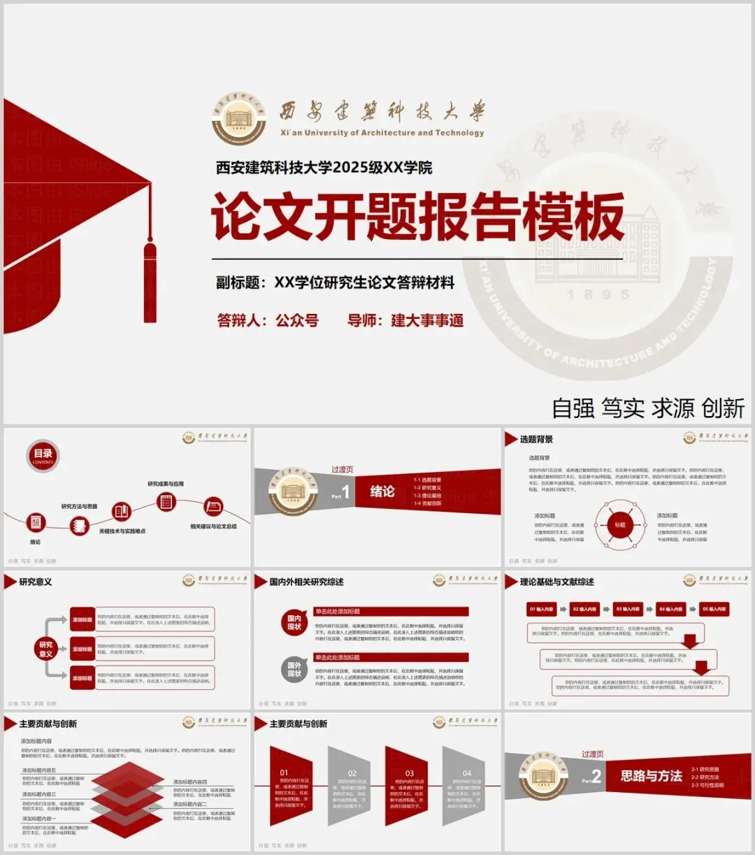 “西安建筑科技大学”PPT模板来了~