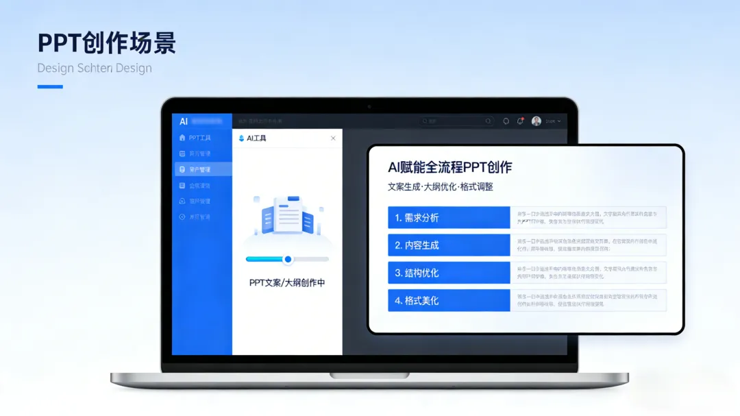 后期:通过“内容/ 页面优化”对 PPT 进行视觉与内容的双重打磨,确保版式设计贴合主题风格(如科技感 PPT 的极简排版、教育课件的色彩区分),内容表达符合用户认知习惯(如将 AI 生成的冗长文本提炼为“关键词 + 图示”的可视化呈现)。