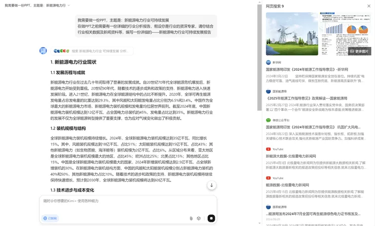 图 1-2使用 KIMI 长文档生成器生成 1.1w 字内容报告