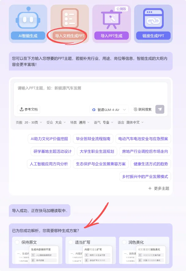 接下来经过人工对文章内容的核查和修改后,可以继续使用 AI 将这篇文档转化为 PPT 大纲,甚至是直接生成 PPT 。