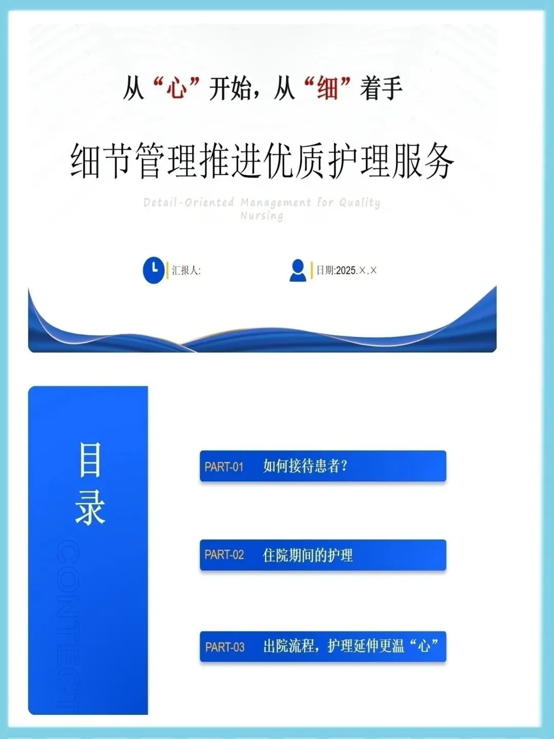 >细节管理推进优质护理服务ppt模板(可编辑)