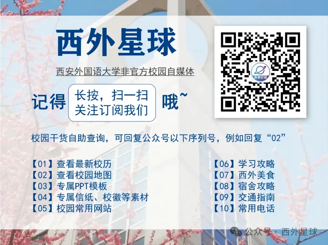 --关注微信公众号“西外星球”--西安外国语大学专属PPT模板来了西安外国语大学专属简历模板来啦!西安外国语大学历年期中期末真题来了~西外毕业生薪酬调查结果第一期西外毕业生薪酬调查结果第二期西外毕业生薪酬调查第3期西安外国语毕业生薪酬爆料第4期西安外国语毕业生薪酬爆料第5期西外毕业生薪资爆料第6期!
