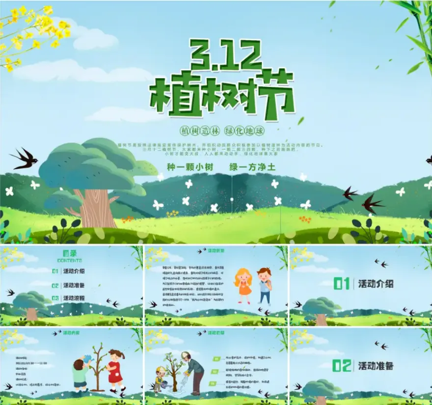 >3.12植树节主题PPT模板(可编辑可直接使用)【免费保存下载】