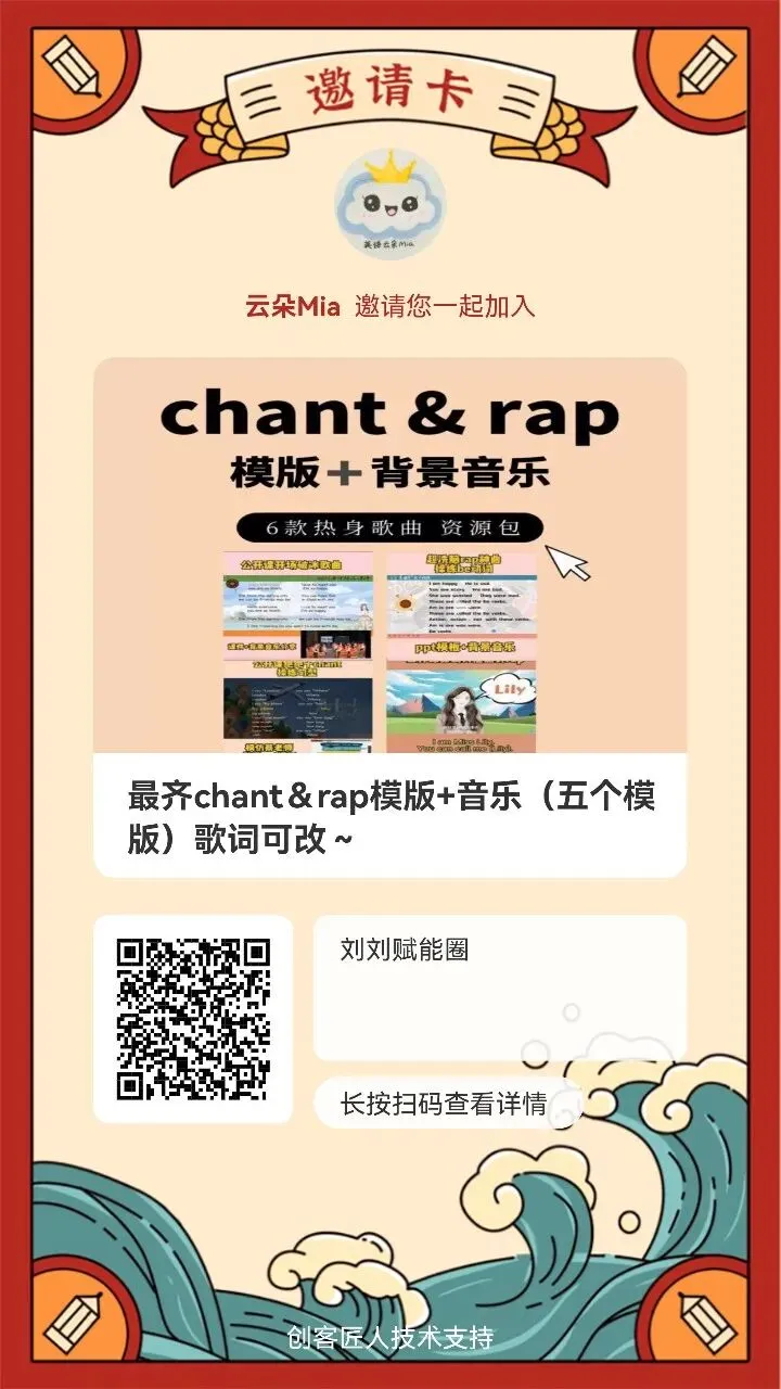 一套好用的Chant PPT模板,直接解决:课堂热身、单词速记、句型操练、纪律管控四大难题。节奏一响,全班跟上;不用喊、不用催,学生主动开口读。